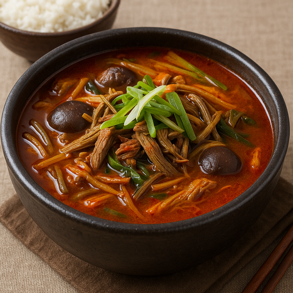 육개장은 단순히 맛있는 음식일 뿐 아니라, 영양적으로도 매우 균형 잡힌 한 그릇 음식입니다.